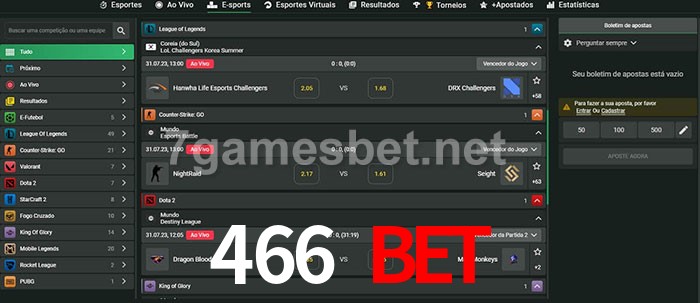 O 466 bet oferece uma grande seleção de opções de apostas em e-sports com probabilidades competitivas